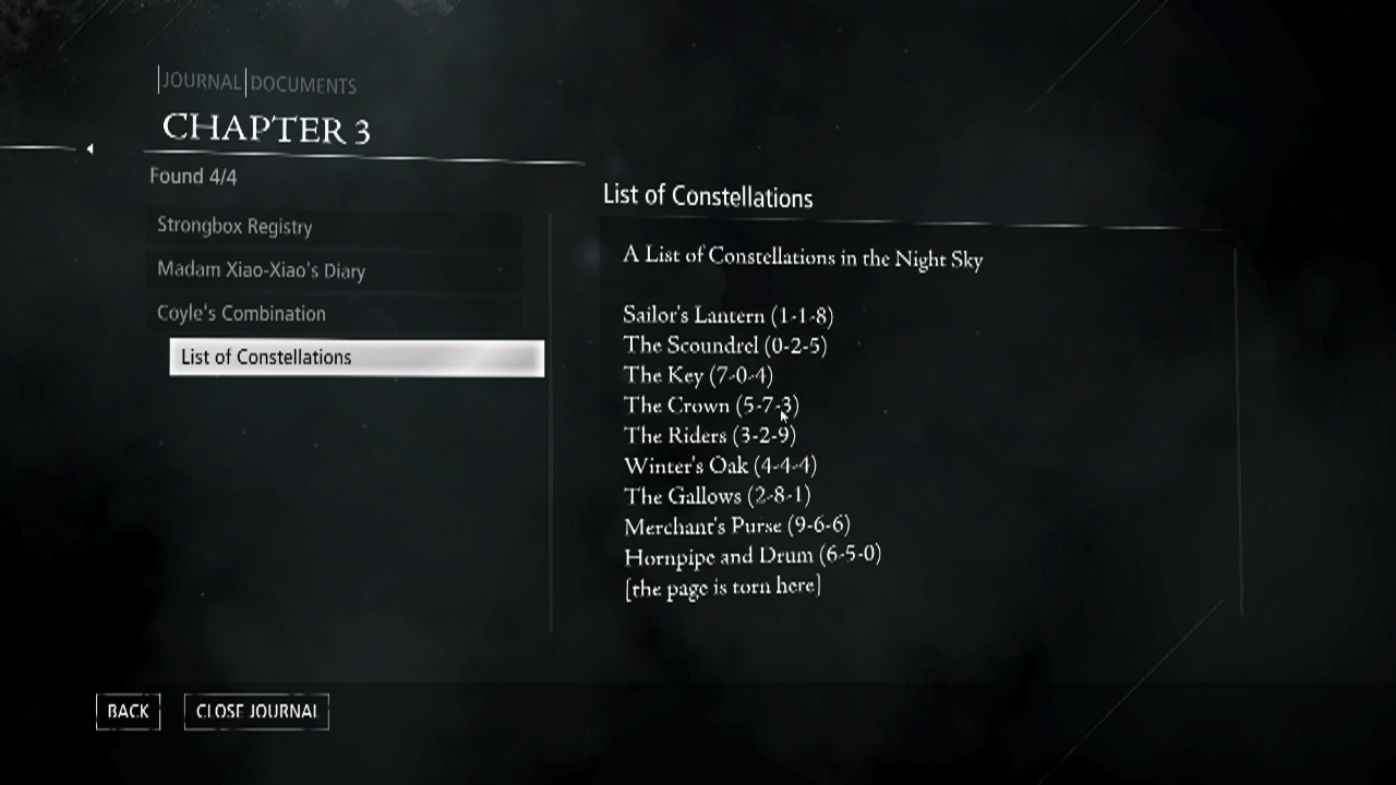 List of Constellations to Open Madam Xiao-Xiao’s Strongbox (Safe) in The House of Blossoms in Chapter 3 Dirty Secrets in Thief 2014
