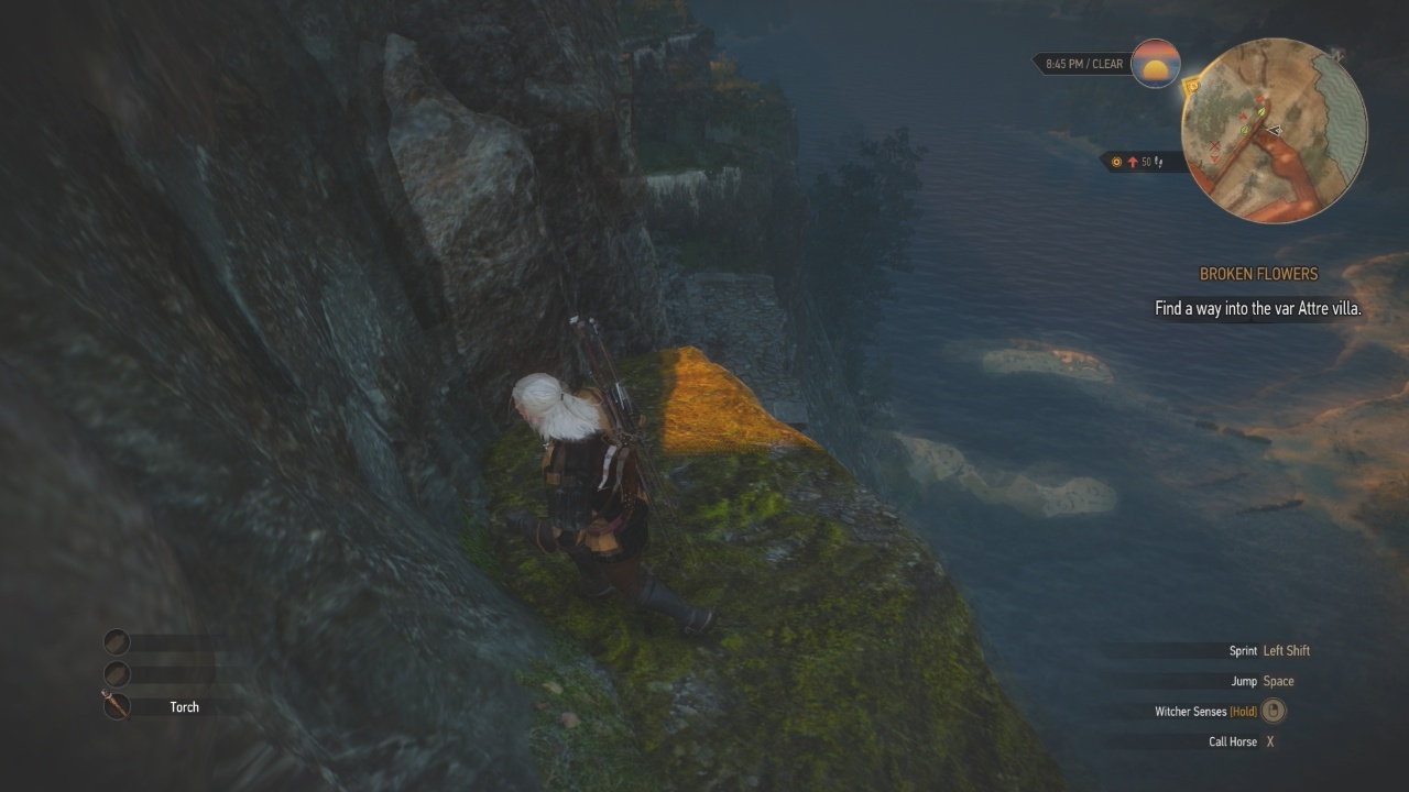 Location of the cliffs to find another way into Attre Villa in Broken Flowers in Witcher 3 Wild Hunt.
