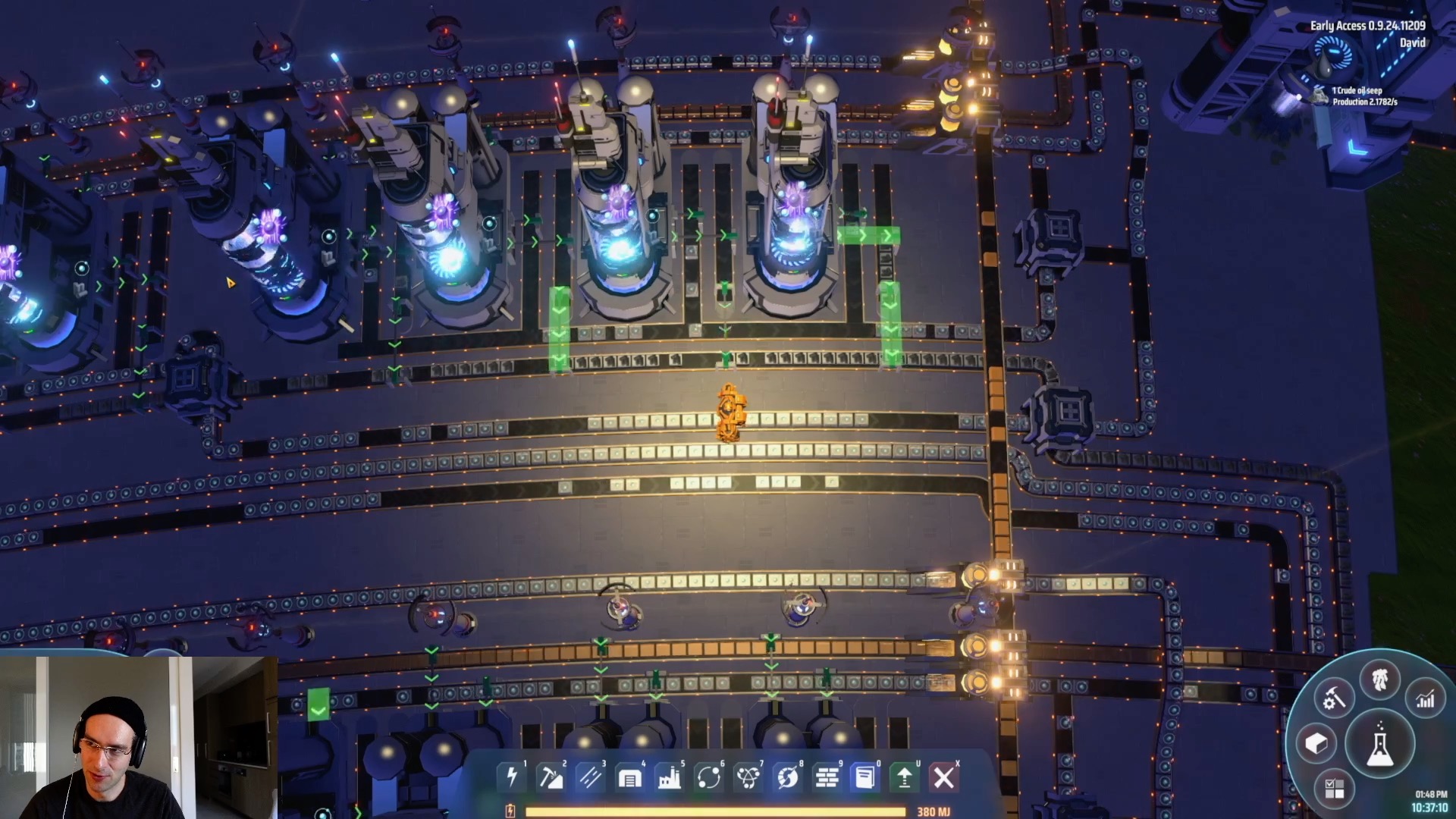 Starting with an overview, the aim will be to use the crude oil gathering, plasma refining and x-ray cracking supplemented by smelting coal to energetic graphene to produce the red energy matrices. The crude oil refining process to hydrogen and energetic graphene produces an excess of hydrogen that you usually would have to store and be at risk of filling up and jamming your production lines. We will instead use the coal smelting to energetic graphene to soak up the excess hydrogen into additional red energy matrices.
